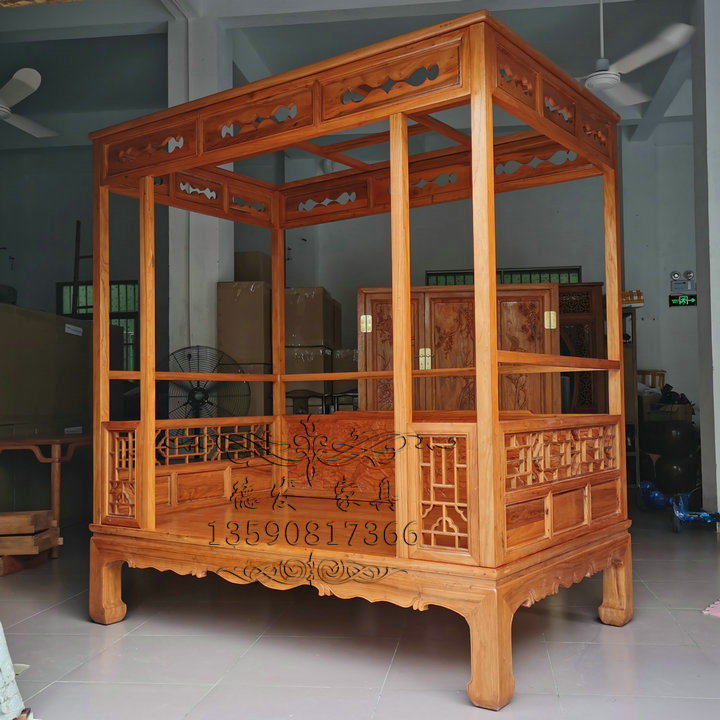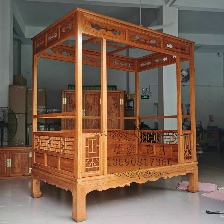 Elm frame bed solid wood thousand worker pulling bed Chinese antique treadle bed double bed Derry furniture support customization