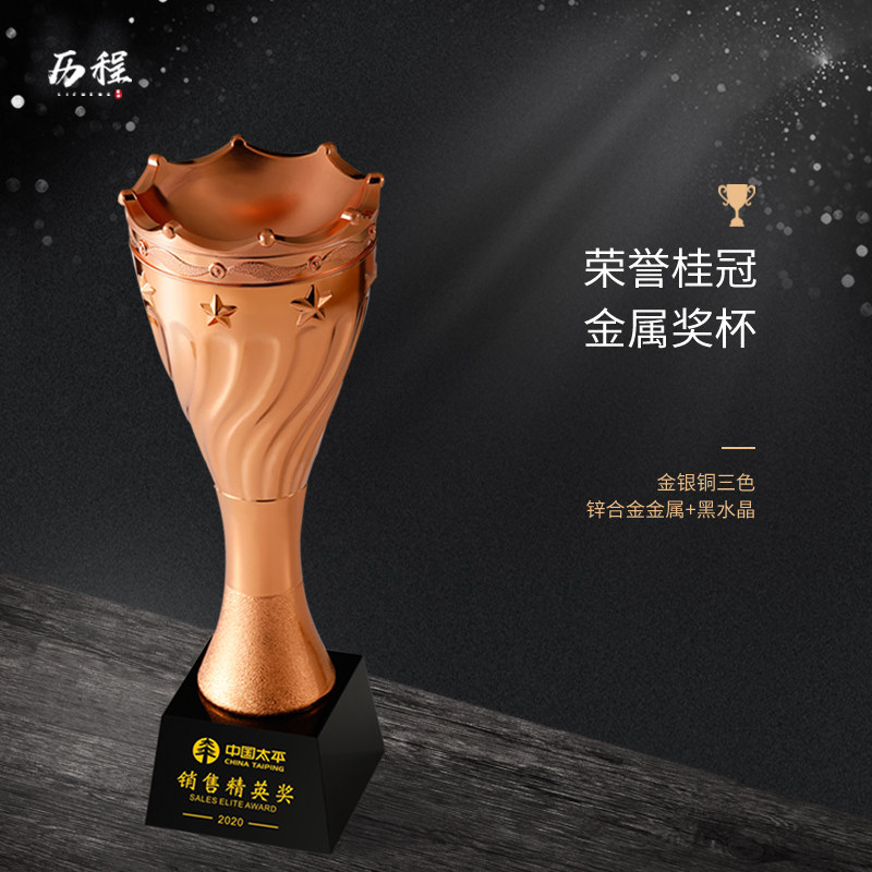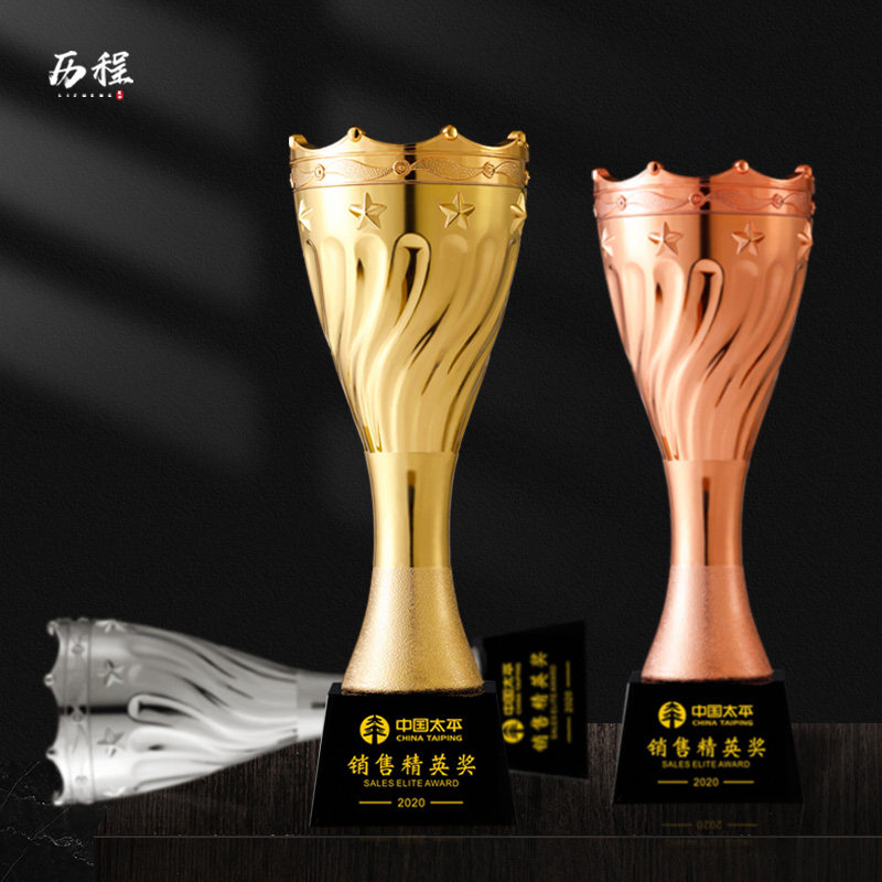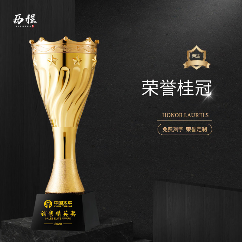 Creative high-end crystal trophy custom metal crown annual meeting outstanding employee award laurel champion gold, silver and bronze production