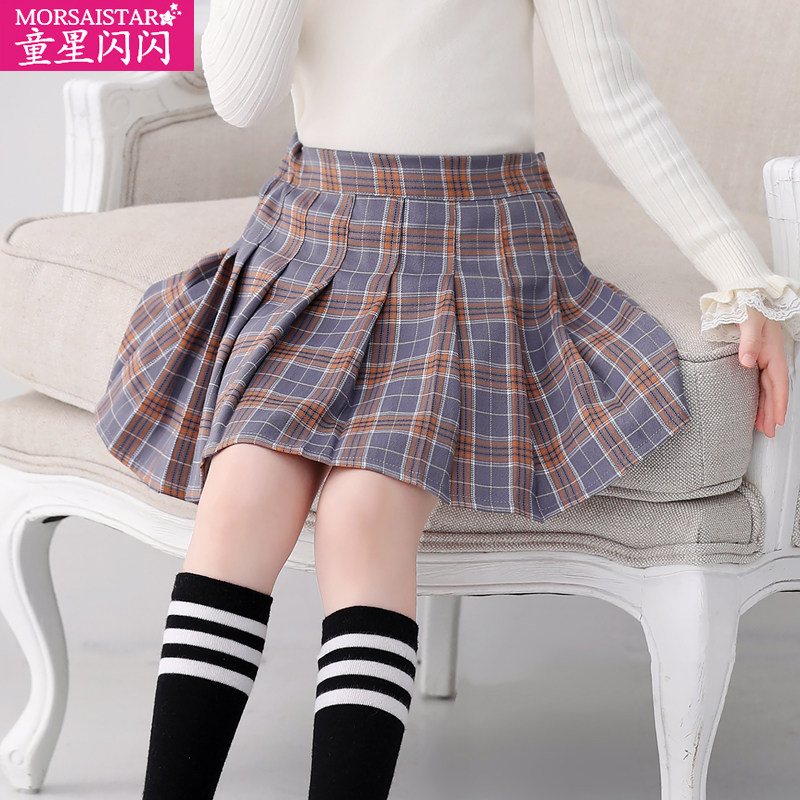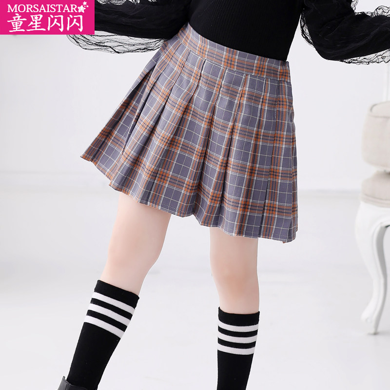 Children's Western style autumn skirt college style girls skirt pleated skirt 2021 new plaid children's spring and autumn clothes