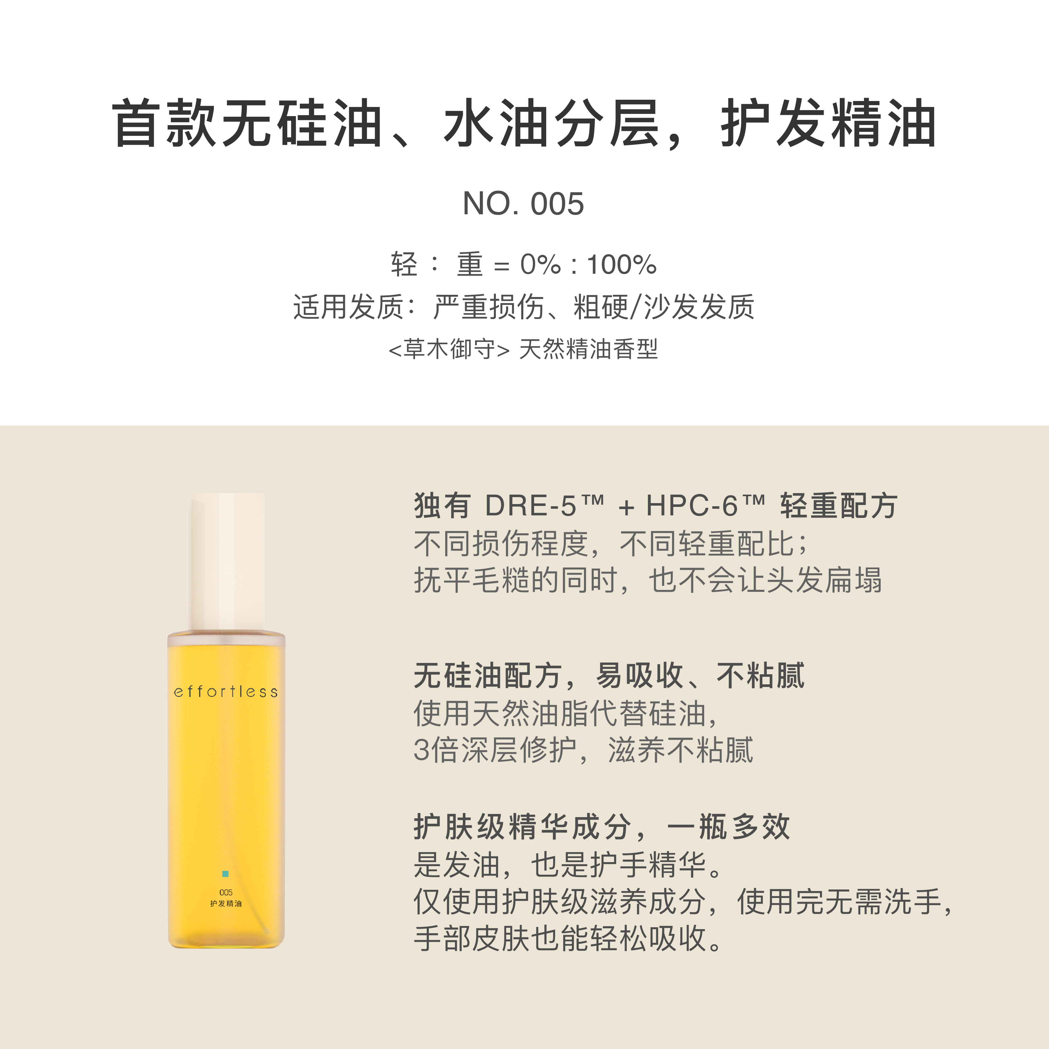 effortless precision hair care light and heavy hair oil No 005
