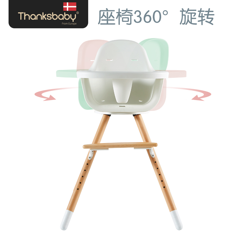 Danish Thanksbabe multifunction growth baby dining chair Nordic design solid wood adjustable children dining chair
