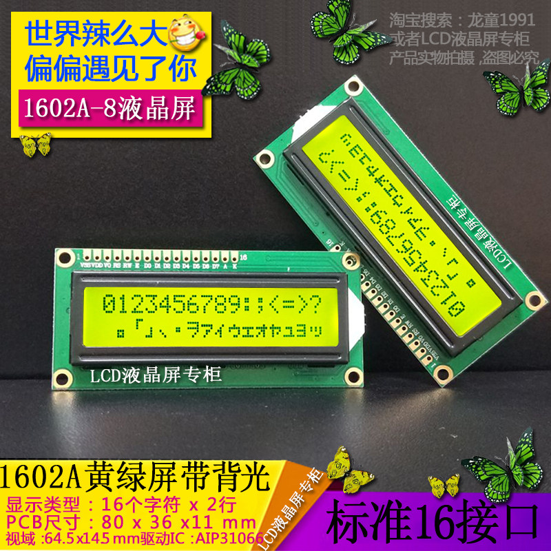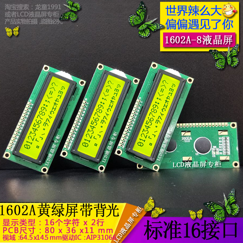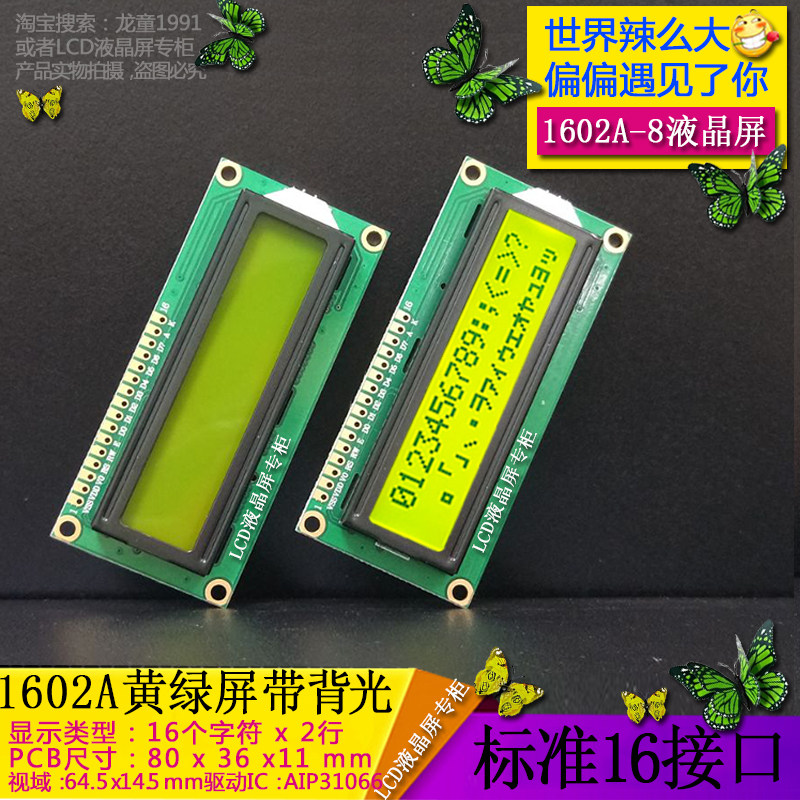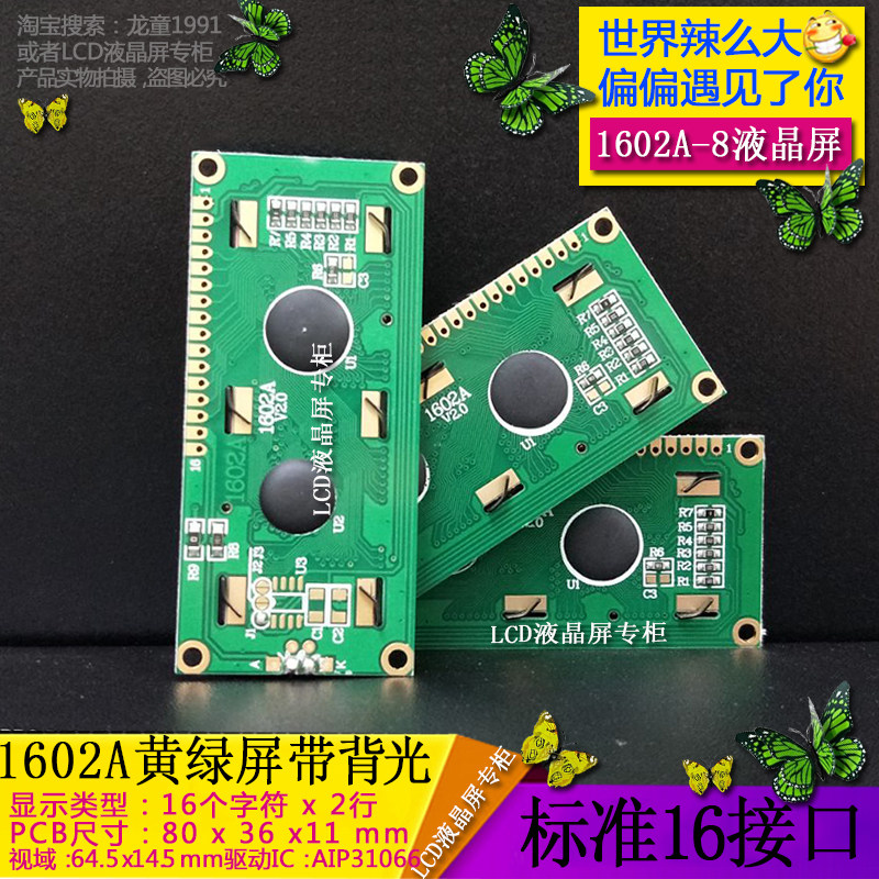 LCM 1602A LCD screen manufacturer developed and produced LCD 1602A LCD display module yellow green screen backlight