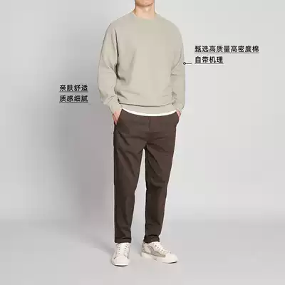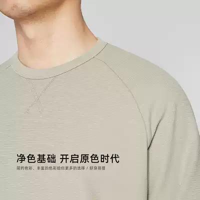 Momake round neck thick cotton T men's spring and autumn hatless thin cotton loose casual versatile solid color pullover autumn top