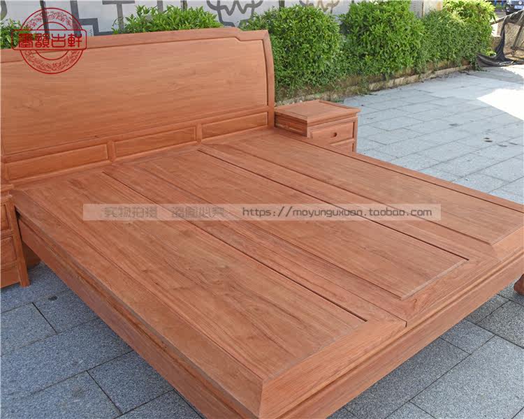 New Chinese solid wood red wood bed 1 8 m double bed master bedroom furniture big fruit purple sandalwood Burmese pear wood large bed