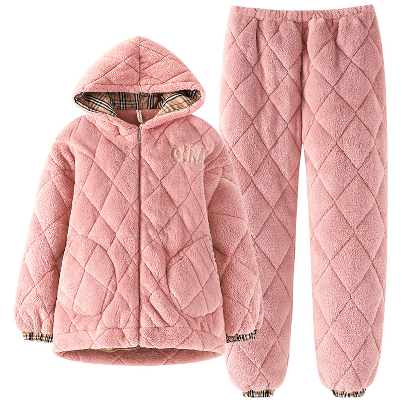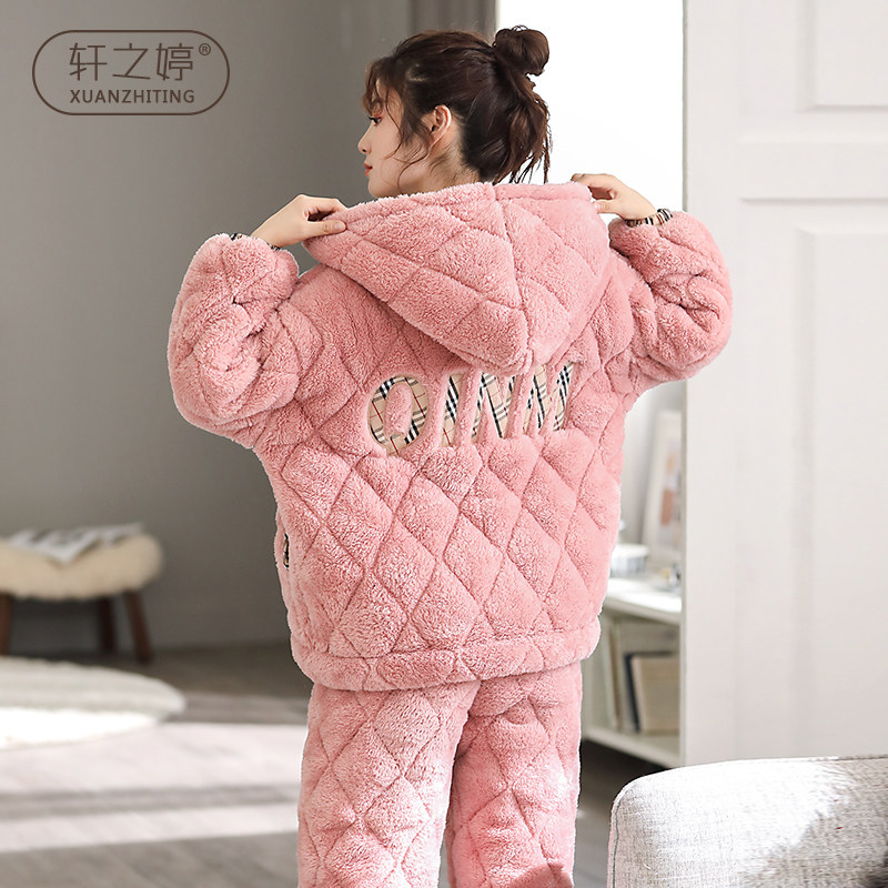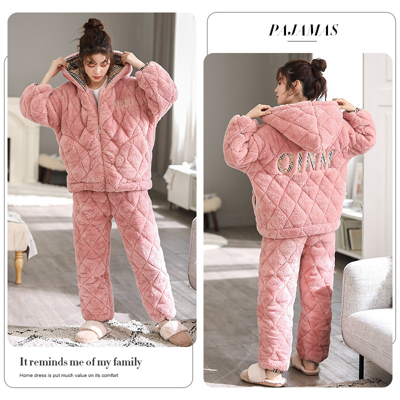 Pajamas Woman Winter Thickened Coral Flannel Triple Clip Cotton Cute Home Wear Warm Can External Wear Plus Suede Winter Suit