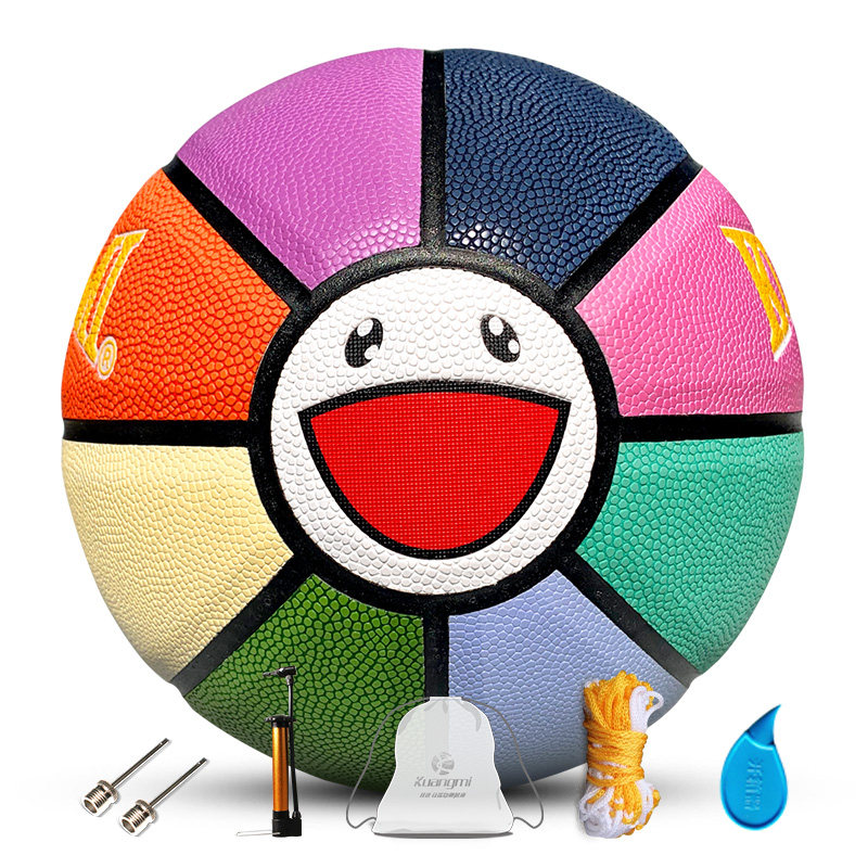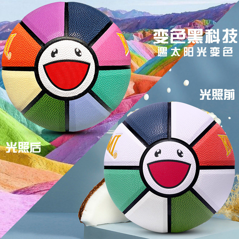 Mad Rainbow Smiling Faces Basketball Students Lettering Customized Encounters Photochromic Flowers Style Cement Ground Wear 7 PU Basketball