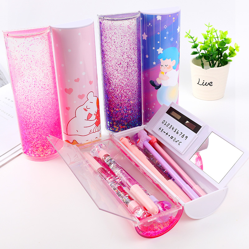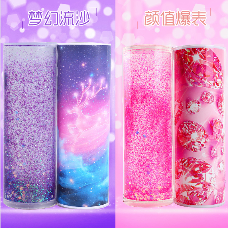 Password lock flow sand stationery box girls cute net red vibrato creative primary school student pencil box multifunctional girl heart small fresh ins pen box large capacity sakura Korean version stationery box boy