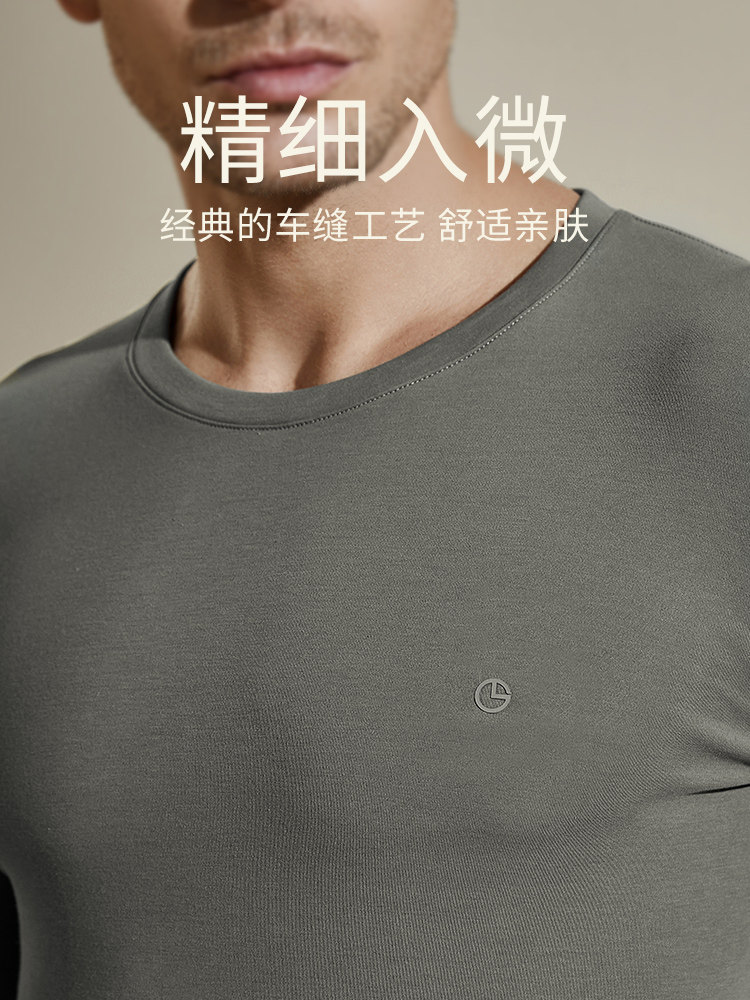 Round neck charcoal gray suit-(80S velvet skin-friendly heat storage)