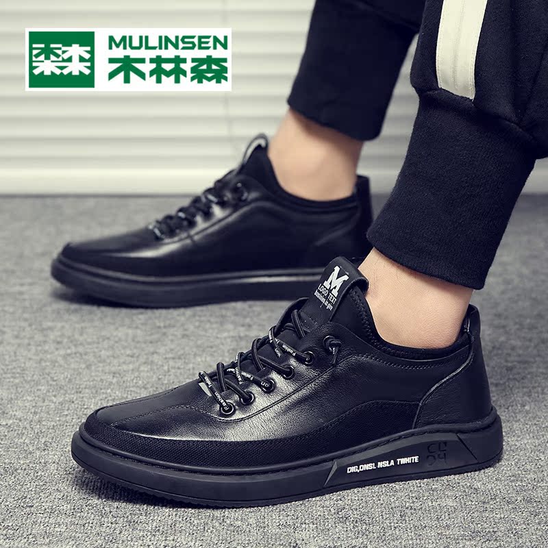 Mulinsen men's shoes summer new Korean version trend all-match casual shoes black small leather shoes winter plus velvet cotton shoes