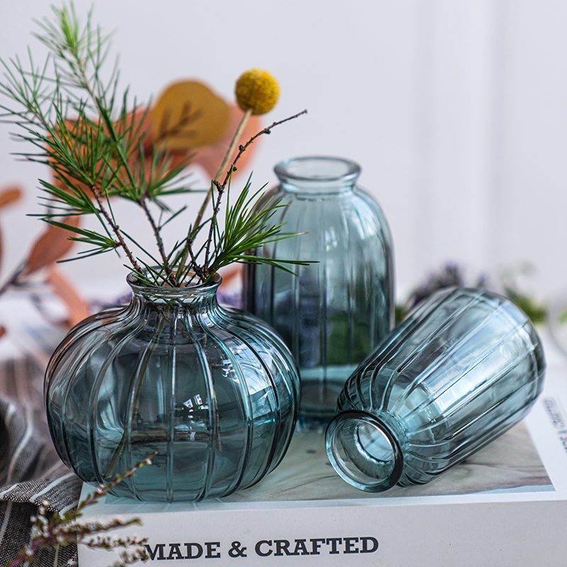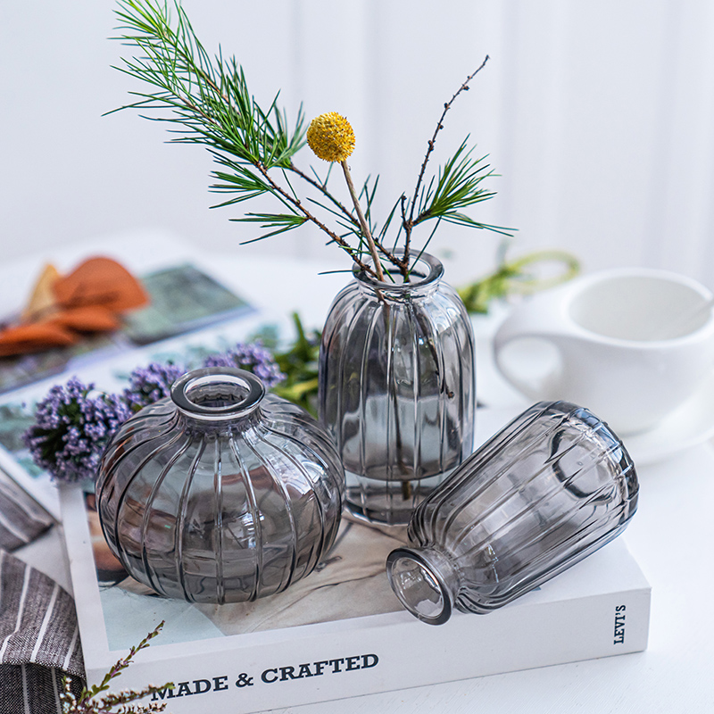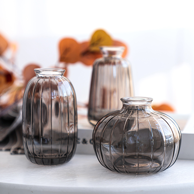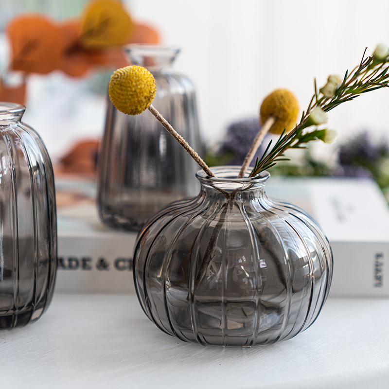 Sun-Style Ins Crystal Clear Small Flower Bottle Pumpkin Mini Glass Flower Arranger Hydroponic Water Peve Parlor Decoration Pendulum