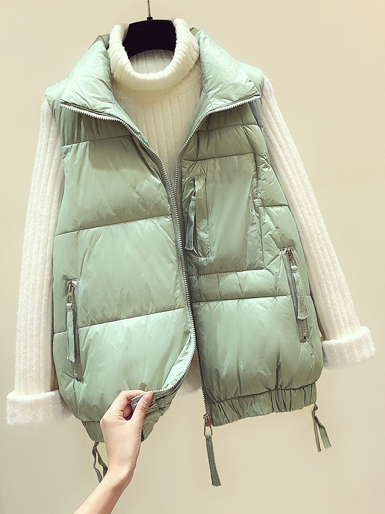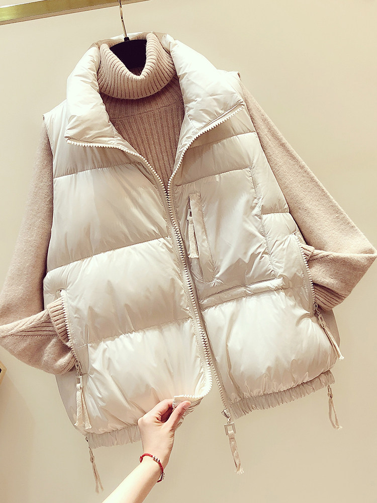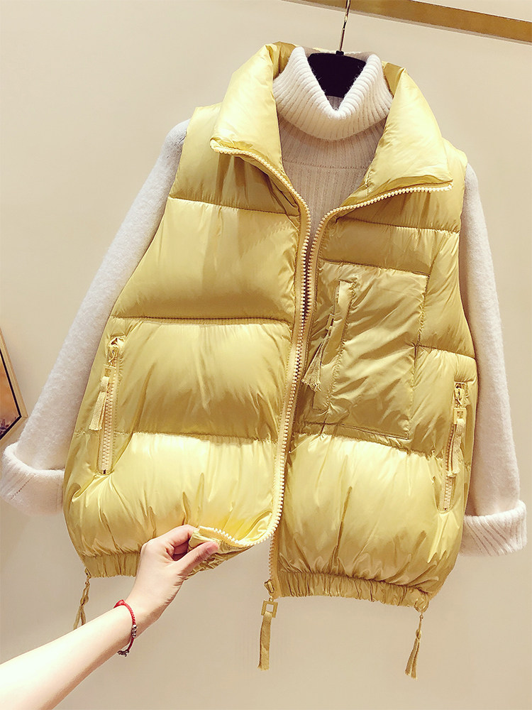 Down cotton vest women autumn and winter wear 2021 Korean version of the outer loose-fitting thin horse clip bright face shoulder vest jacket
