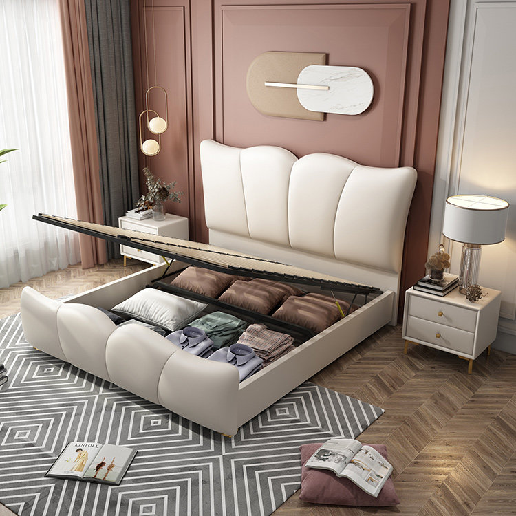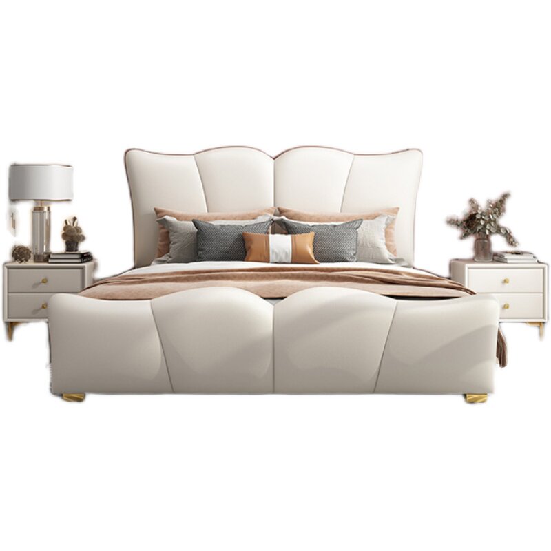 American new pine wood bed board soft bag headboard Nordic in light lavish bed net red pu leather bed double bed main wedding bed