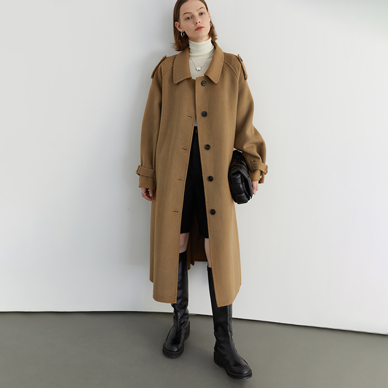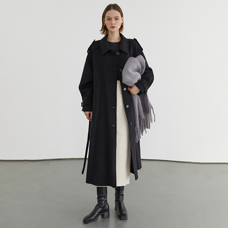 Fan Loo 2022 Winter new pure handmade daring with shoulder sleeves Long version of windy-style bifacial nigcoat jacket woman