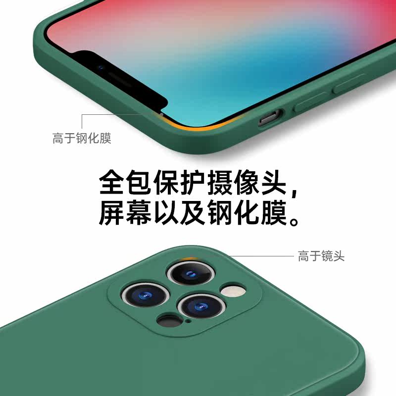 New apple 12 phone protection shell 12mini liquid silicone gel 12promax straight frame anti-fall protective sleeve lens full package