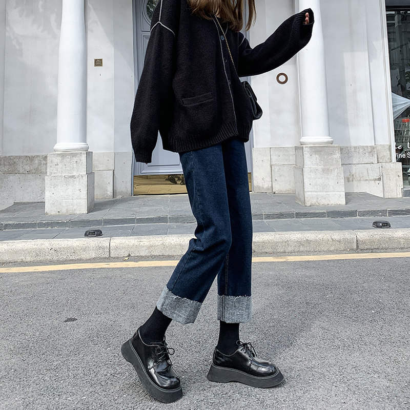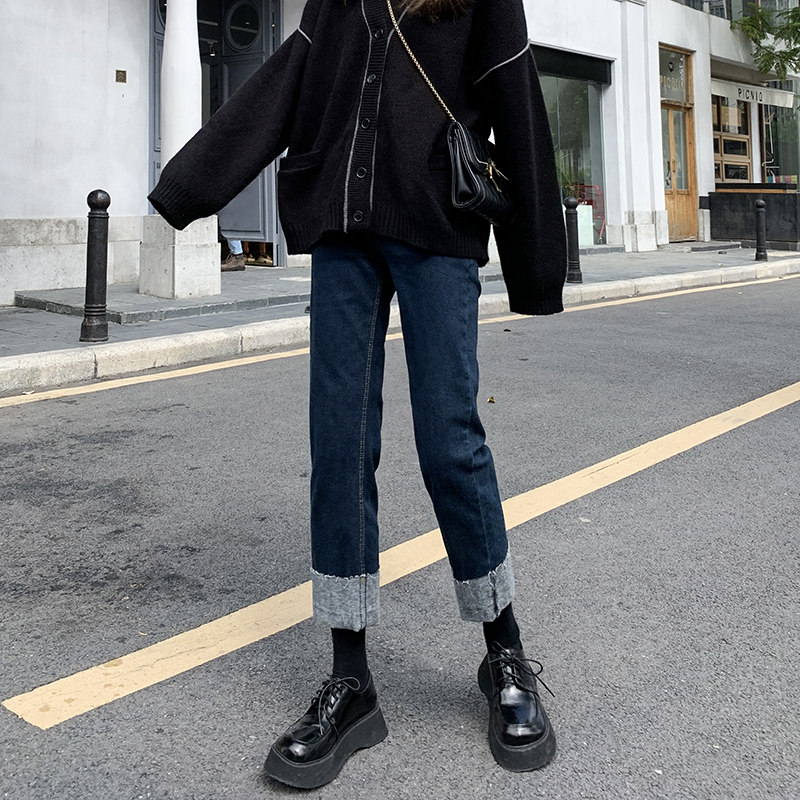 Curl Straight Drum Jeans Woman Spring Autumn New Loose Slim High Waist Smoke Pipe Pants 90% Small Sub Wide Leg Pants