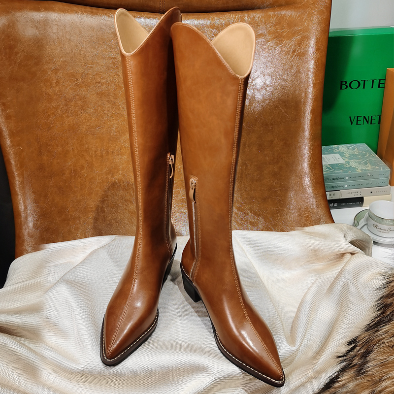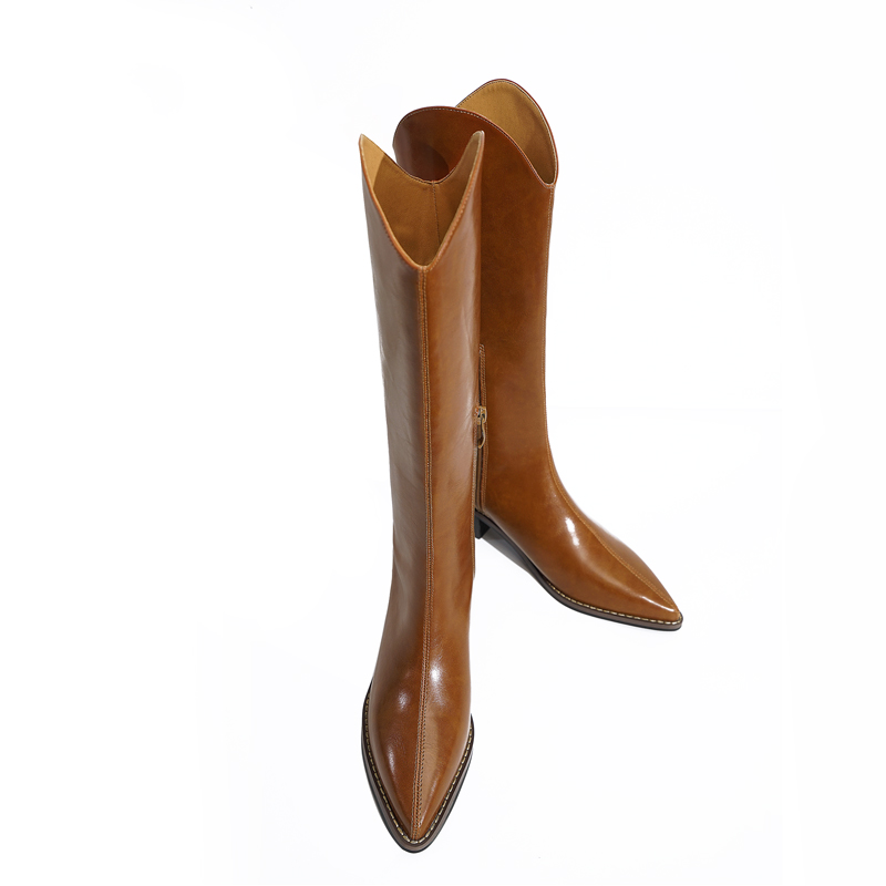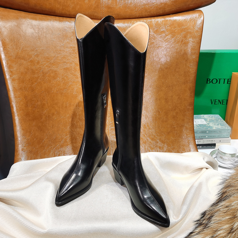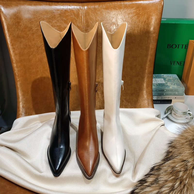 2022 Autumn Winter Western Cowboy Boots Coarse heel Custard V Mouth Long Barrel Boot Retro Riding Boots Woman however knee-high cylinder boot