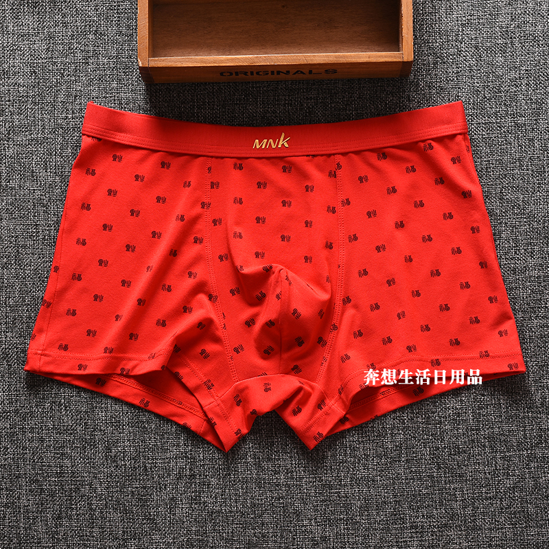 Sanuya Big Red Underpants Men's Pants Pants Moto year Marriage Festive Four-corner Pants Bamboo Fiber Sky Bamboo MNK33398