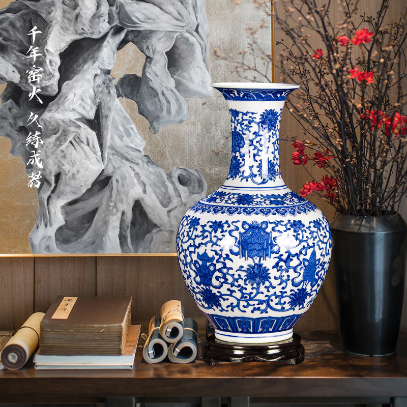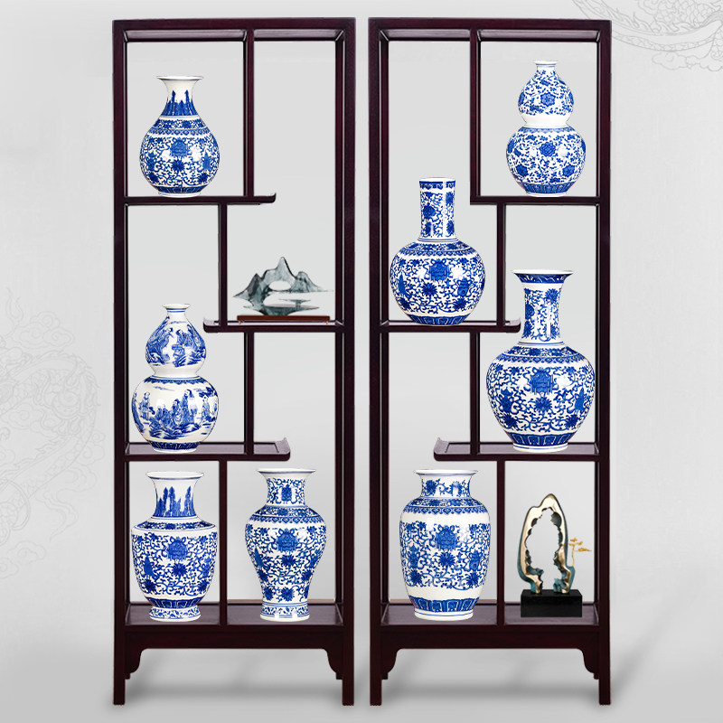 Small blue and white tangled branch viewing bottle without base Small blue and white tangled branch viewing bottle with wooden base Small blue and white tangled branch plum bottle with wooden base Small blue and white tangled branch celestial ball bottle with wooden base Small blue and white tangled branch jade