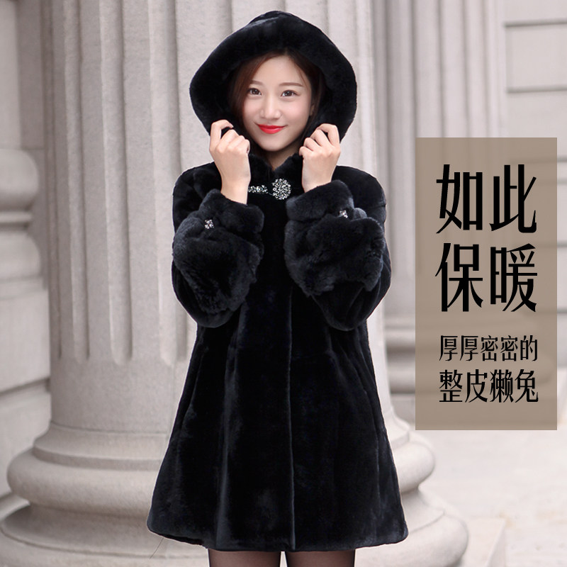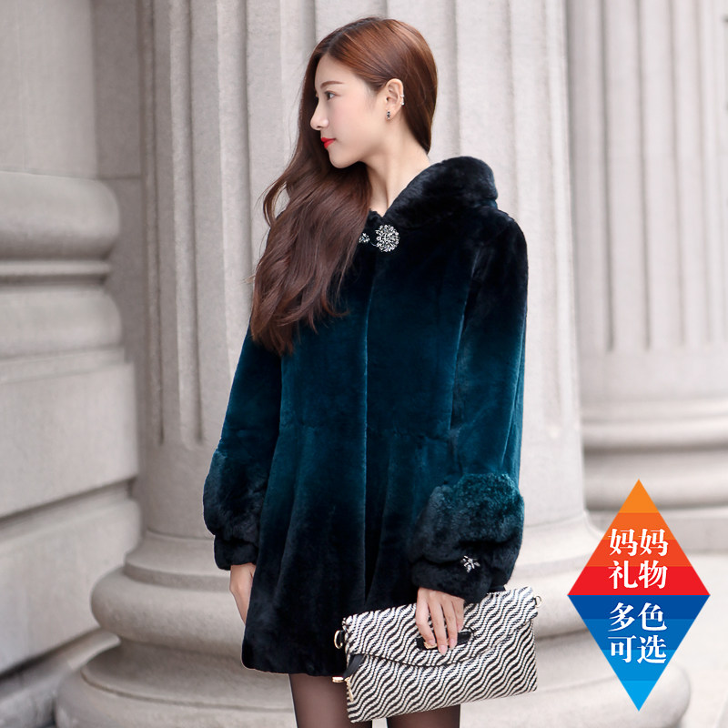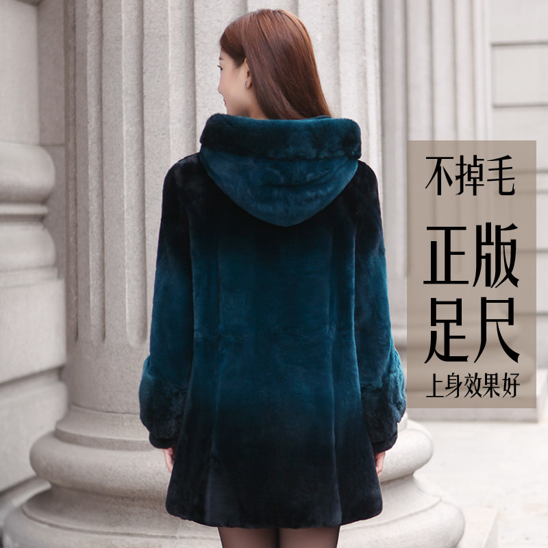 Rex Rabbit Fur Grass Medium Long Version Women's Coat 2021 Winter New Pint Whole Pirex Rabbit Coat in Old Age Mom clothes