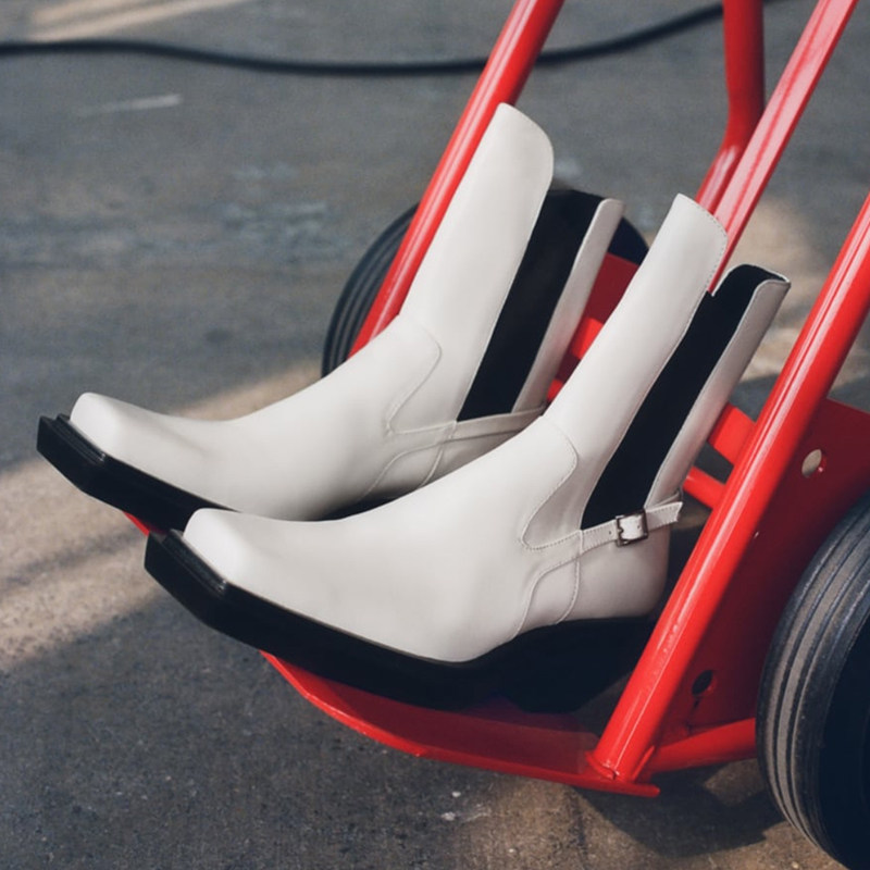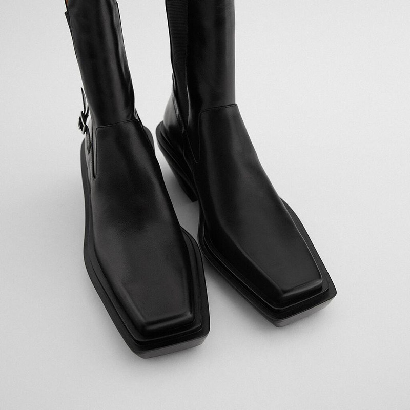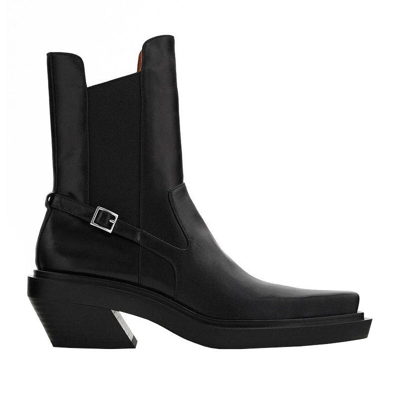 Small CK2021 square head cowboy high-heeled boots Joker British wind smoke tube Chelsea boots leather Martin boots women