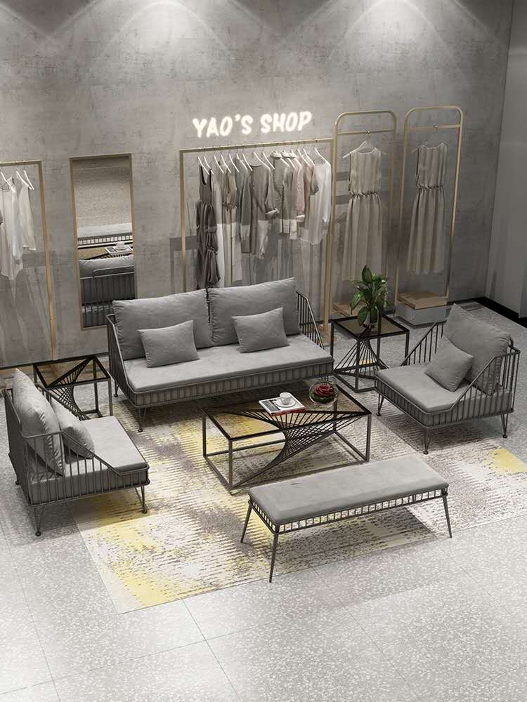 Wrought iron sofa office furniture business VIP beauty salon clothing store coffee table combination simple fashion hair shop