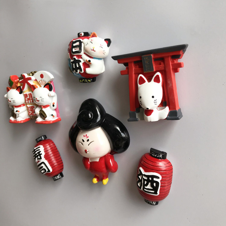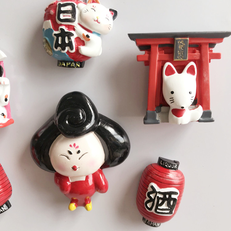 (4) New export Japan Tourism Commemoration of the property cat shrine Creative stereoscopic magnetic refrigerator sticker