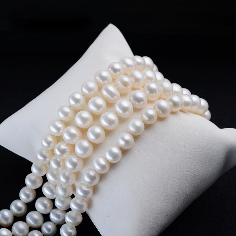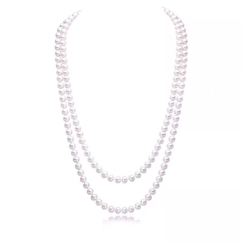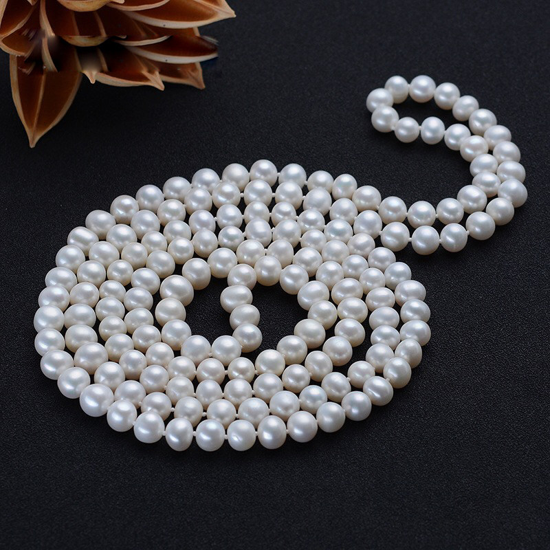 Fresh Water Near Round Pearl Sweater Necklace Woman Long Version Necklace White Double Laminated Wearing Autumn Winter Upscale Atmospheric Brief Gift
