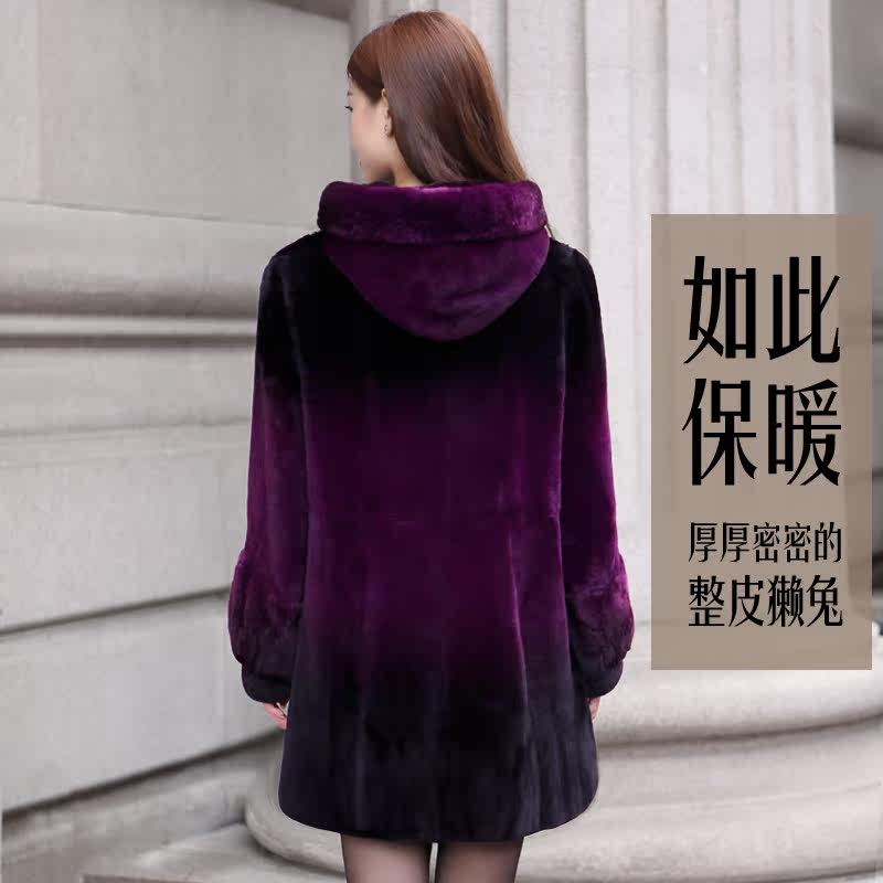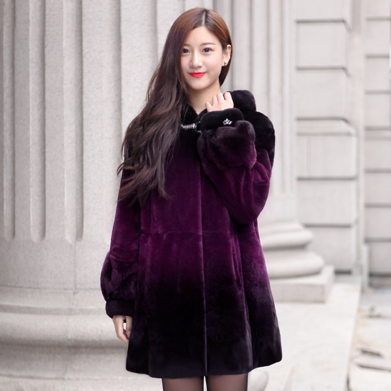 Rex rabbit fur fur medium long version women's coat 2021 Winter new whole skin Rex rabbit coat plus fat big size