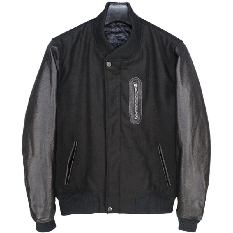Loss sale autumn and winter new wool stitching cowhide sleeves baseball jacket leather leather men's extra large size