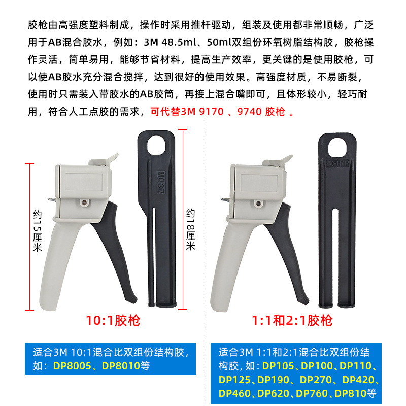 Epoxy Resin AB Double Pipe Manual Propulsion Type Glue Gun 10: 1 Double Composition 1: 1 Structural glue Special combined glue gun