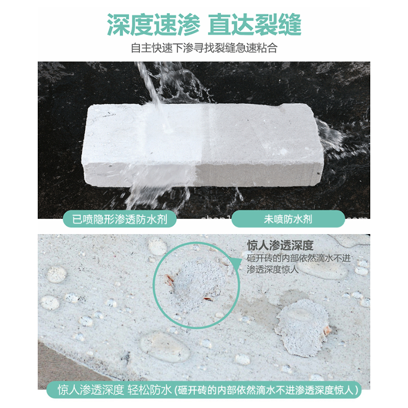 Brick-free penetration type nano waterproof spray exterior wall waterproof glue paint tile dressing room roof leak king