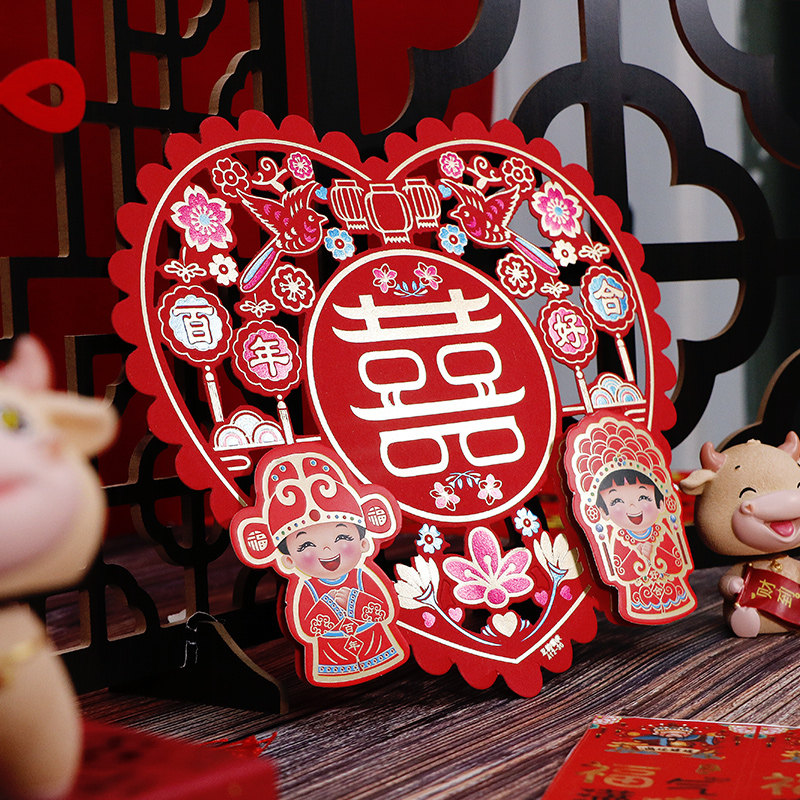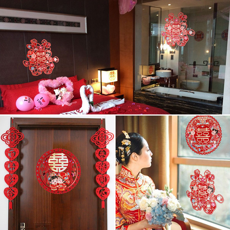 Happy Character Wedding China Wind Hollowed-out Happy Character Stickler Wedding House Decoration Wedding House Door Gate Wedding Arrangement Wedding items