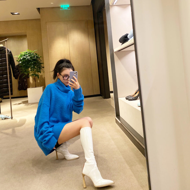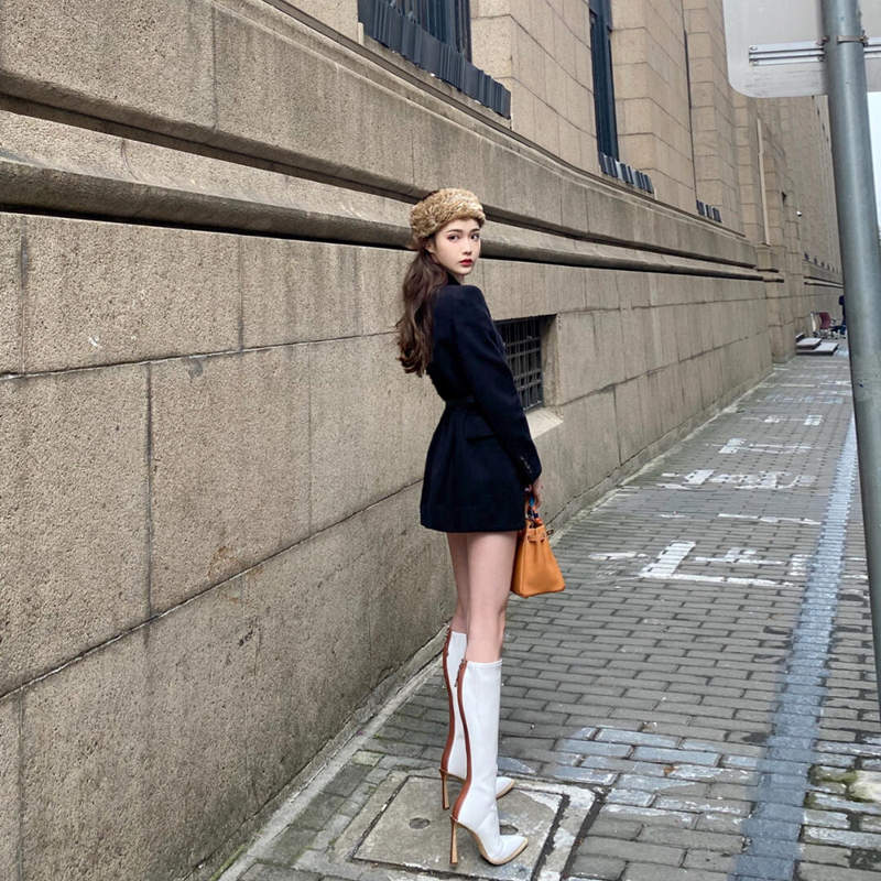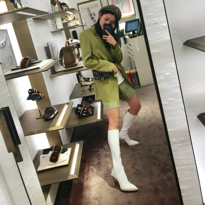 White boots women's winter new patent leather pointed high-heeled high-heeled boots women's butt-knee stiletto high-top riding boots