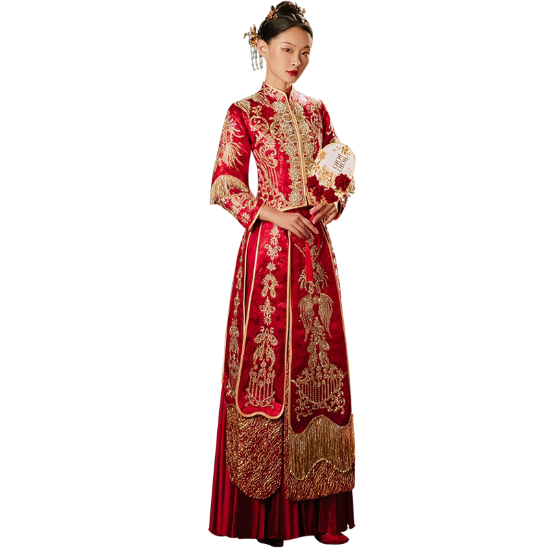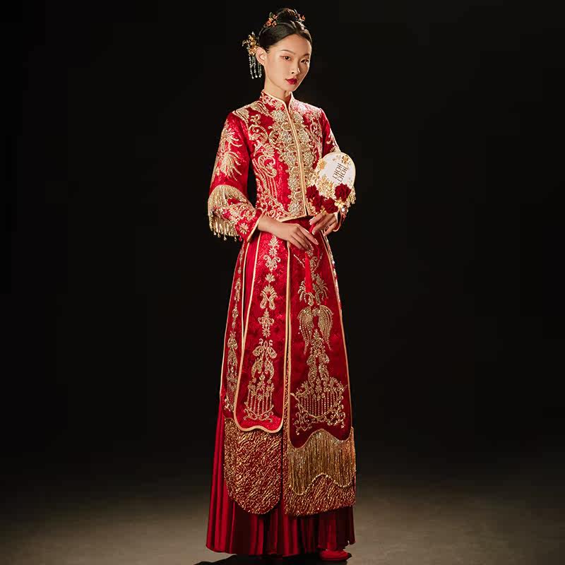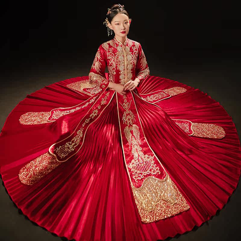 Show and dress 2022 new wedding bridal gown Chinese wedding dresses Longfeng hung up with wine to be served with a feminine cape and a female show