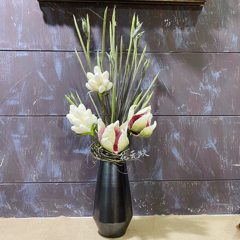 Light luxury retro - simulation flower bouquet roses abstract fruit sample room TV cabinet table with fake silk flowers