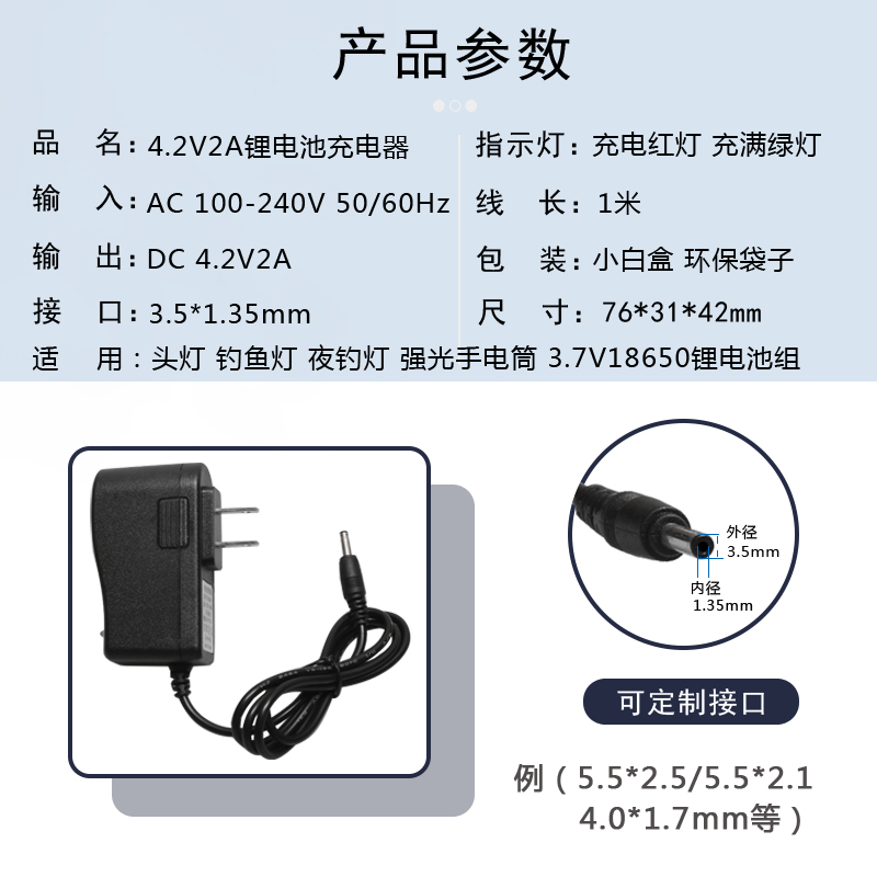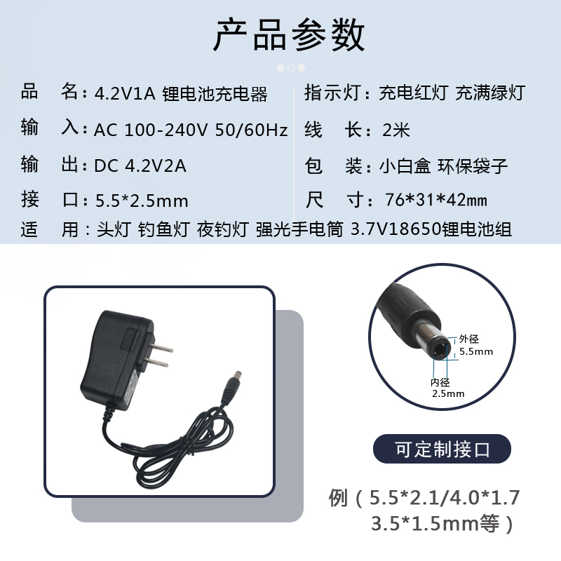 4 2V2A Charger 18650 Lithium battery Floodlight Flashlight 3 7V Single-section Universal Polymer Straight-charging