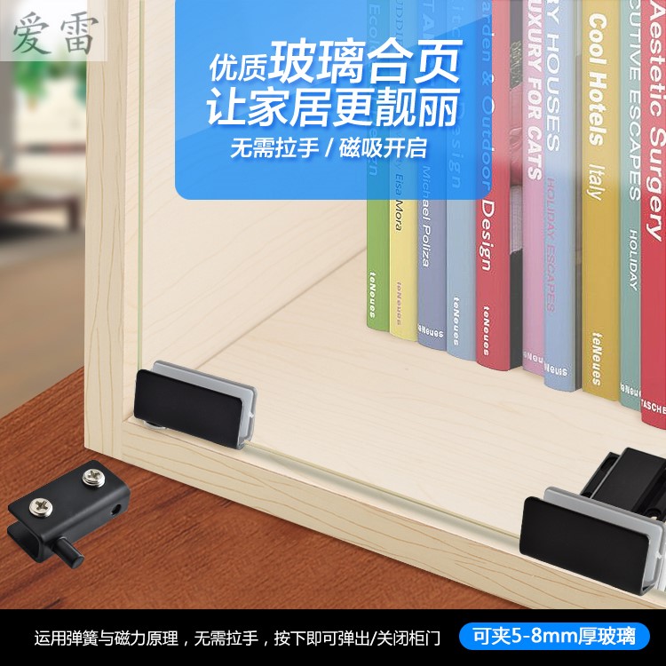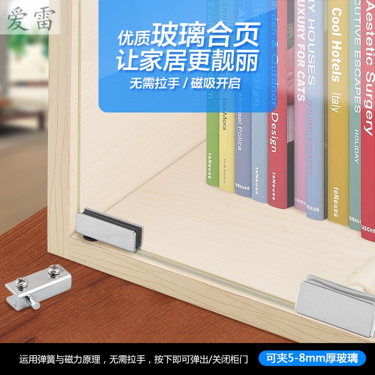 Integral cabinet display cabinet door upper and lower clip shaft Glass door hinge Stainless steel glass hinge Cabinet shaft magnetic touch door suction