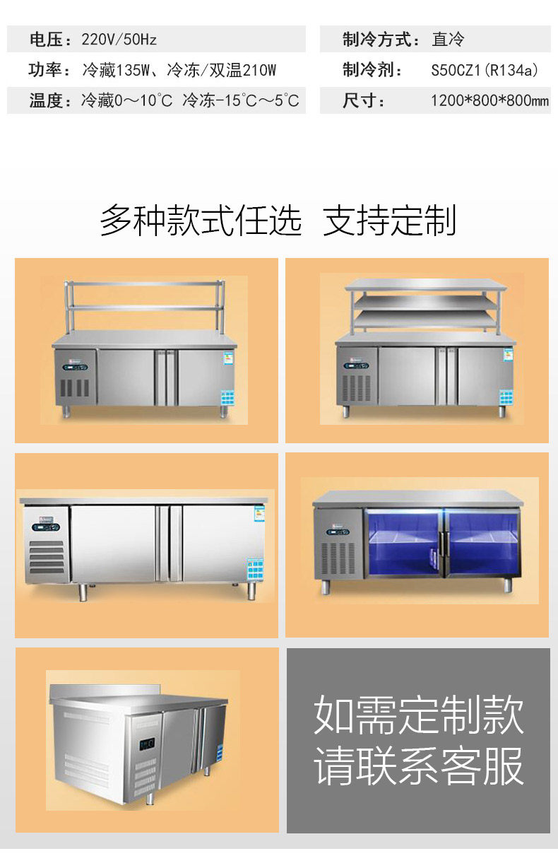 Fresh-keeping refrigerated frozen network coffee milk tea shop equipment stainless steel water bar full set of operation workbench commercial freezer