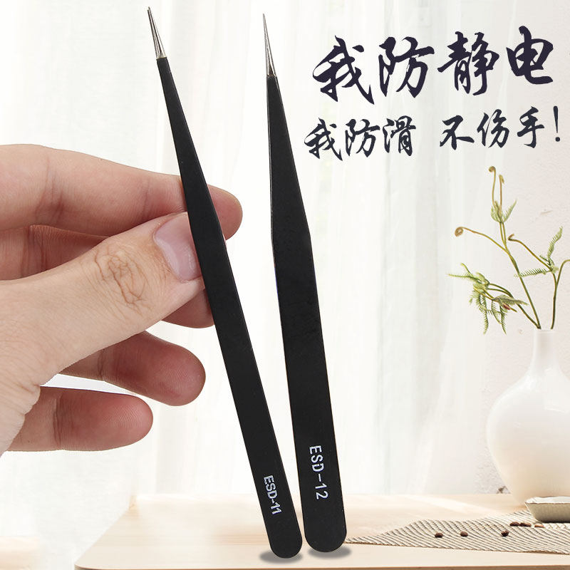 Anti-static tweezers pointed long Nie clip tool repair manual bird's nest elbow hand account with large stainless steel
