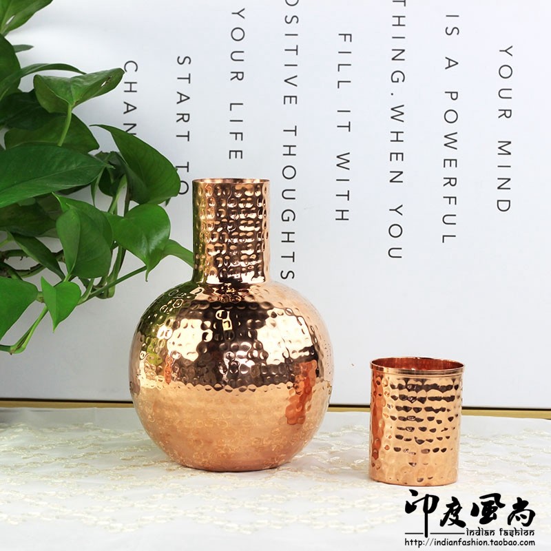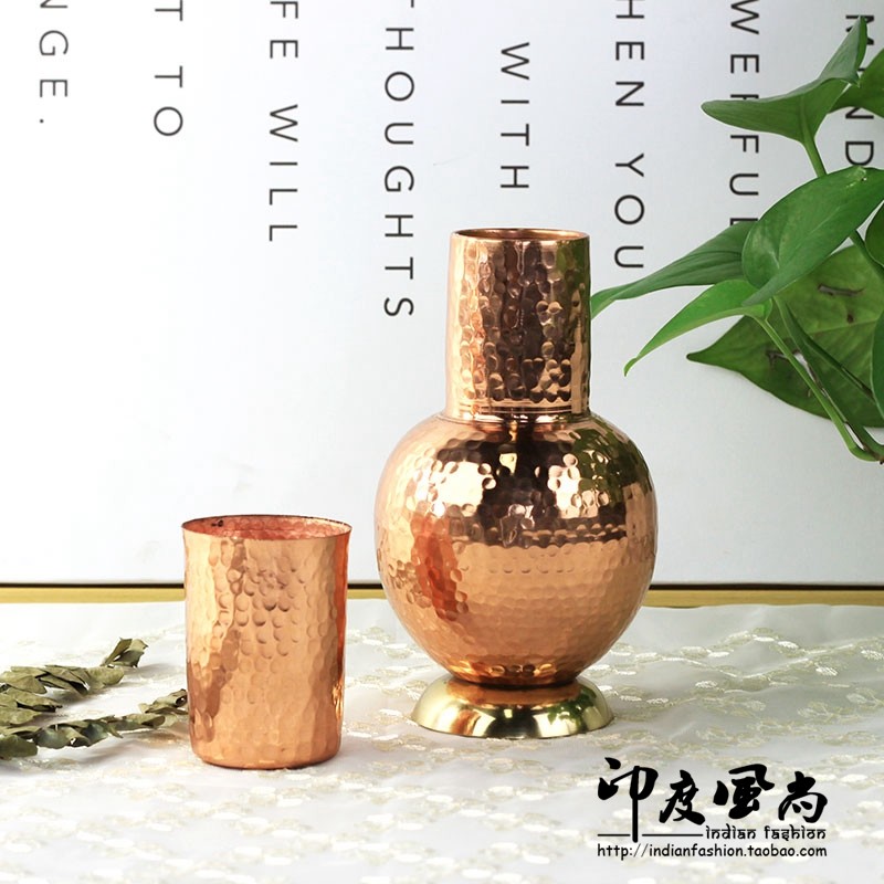 Indian fashion imported cup bottle water utensils set vintage Southeast Asian home teacup pure handmade copper ornament gift