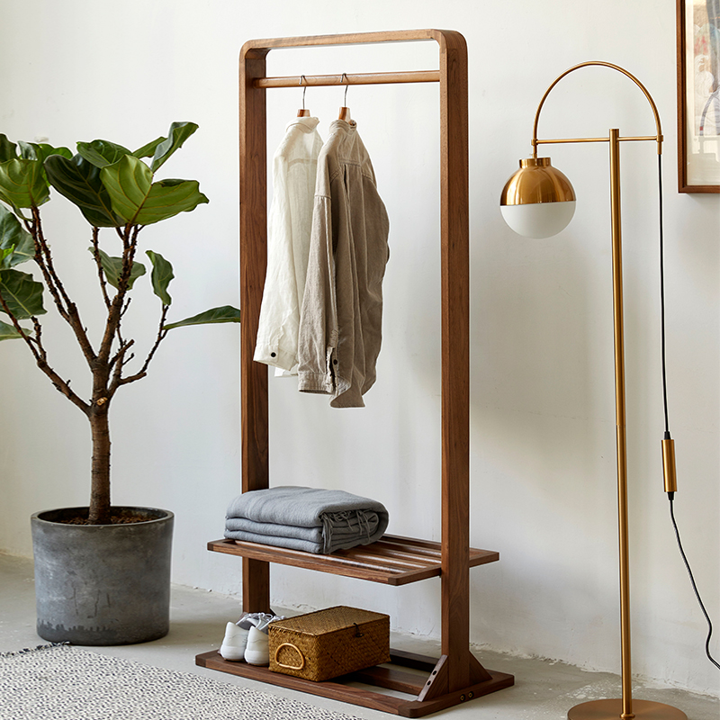 Nordic full solid wood light and luxurious floor hanging clothes hanger bedroom living room Living room shelve Cherry Wood Walnuts Wooden Pole Style Cloakerstand-Taobao