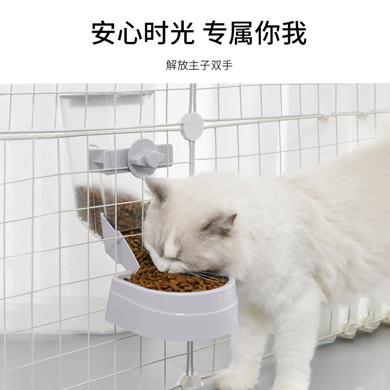 Pet hanging cage with automatic feeder Automatic feeding artifact Cat food Dog food Cat basin Cat food basin Two-in-one