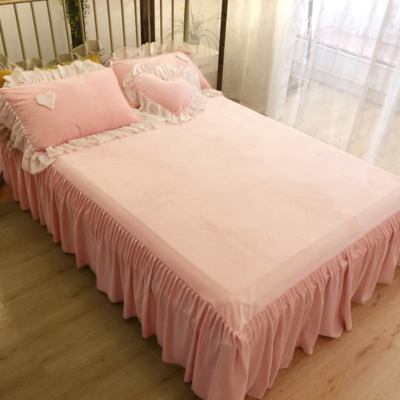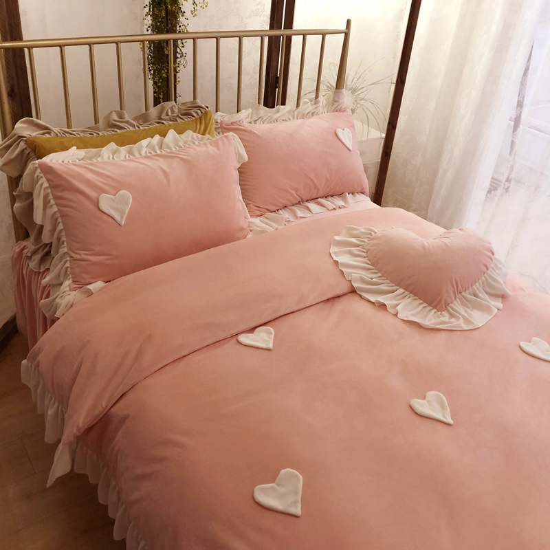 Ins Fairy Wind Velvet Bed Coral Fleece Lace Four-Piece Set Faleur Winter Velvet Flannel Quilt Cover