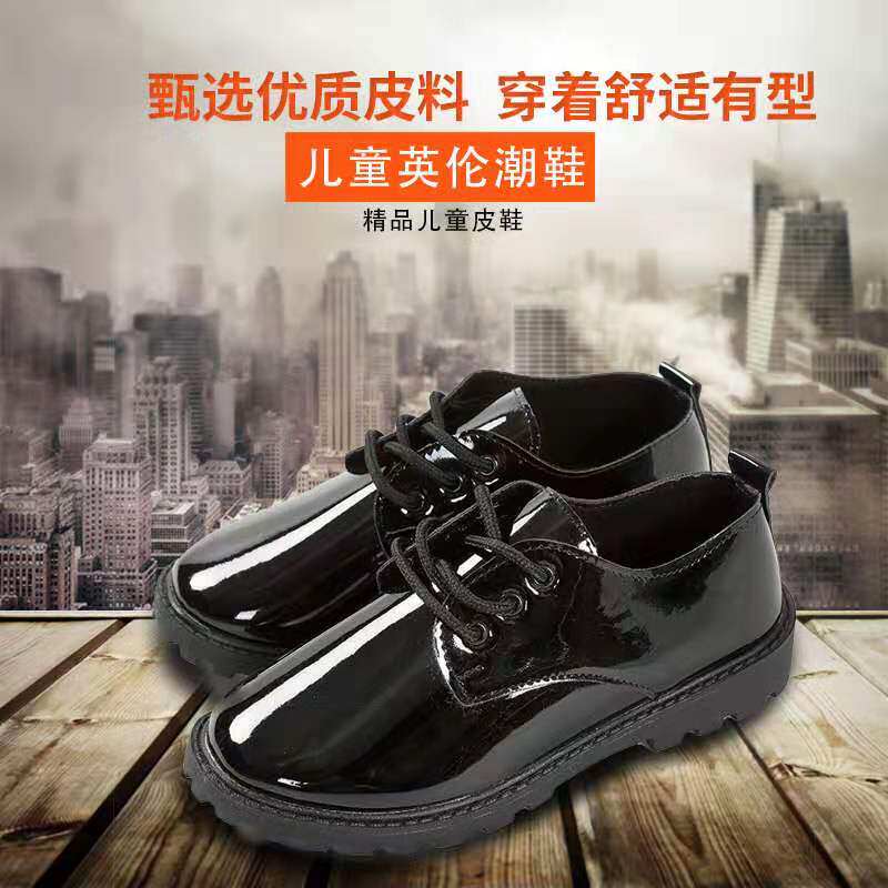 Boy's leather shoes black British wind leisure boy performing dress shoes in the big children's children performance shoes