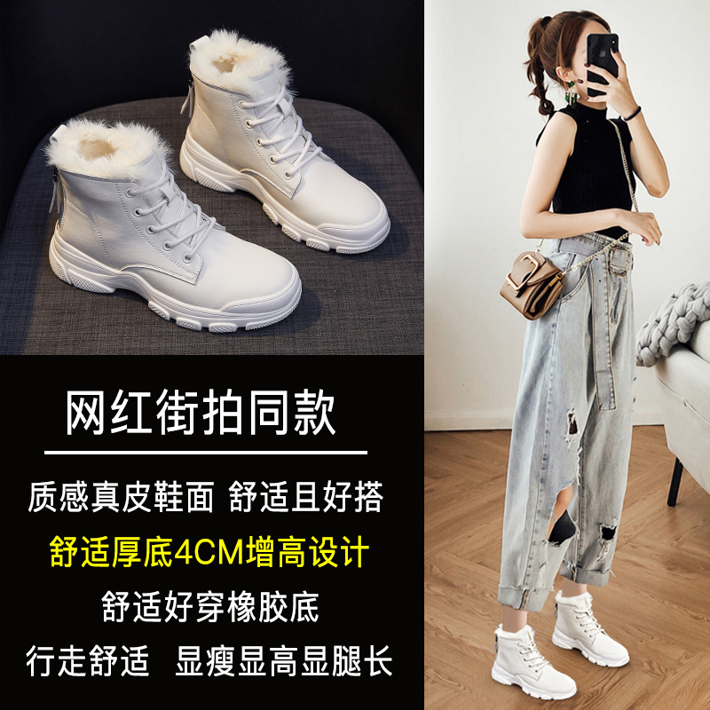 Daphne snow boots women's 2022 new winter plus velvet thickened two cotton shoes leather short boots Western style Martin boots