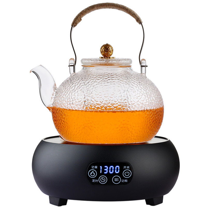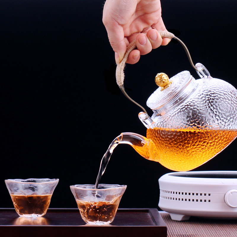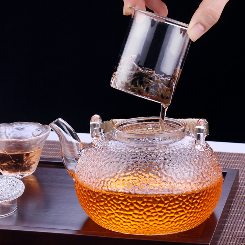 Large Capacity Hammer Stripe Glass Tit Beam Cooking Teapot Pu'er White Tea Black Crystal Furnace High Temperature Resistant Burning Water Health Care Bubble Teapot