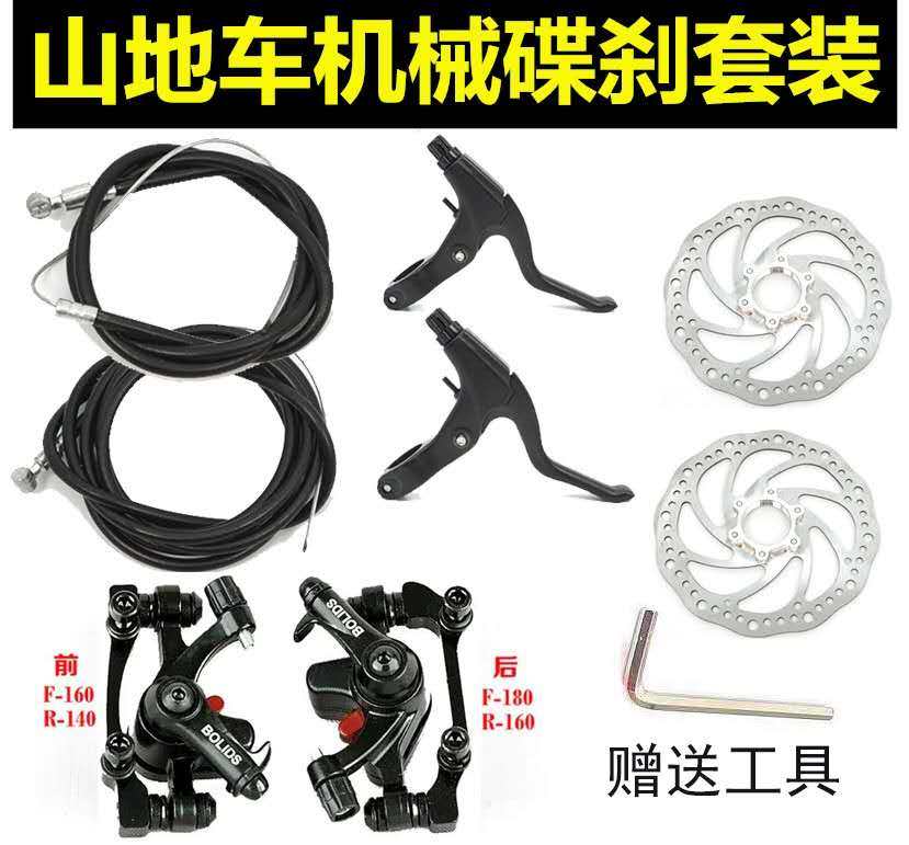One front disc brake, one rear disc brake, one front disc brake, one rear disc brake, one 160 threaded disc, one 160 cassette disc, one front disc brake, one set of threaded discs, one rear disc brake, threaded