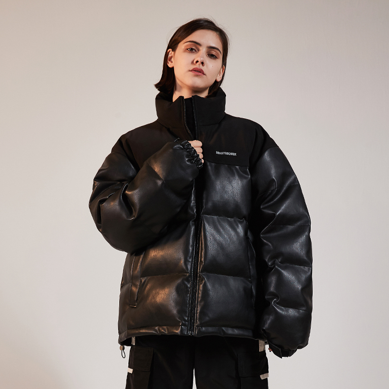 BENMYSHOWER national tide cotton clothes men's Tide brand PU leather jacket new coat bread loose cotton padded jacket couples