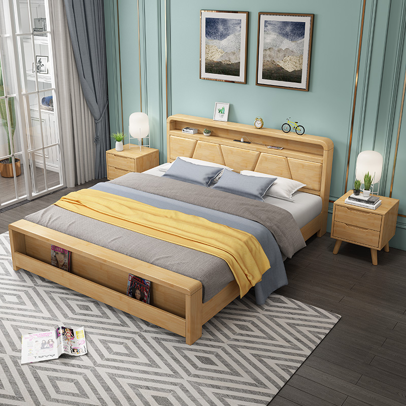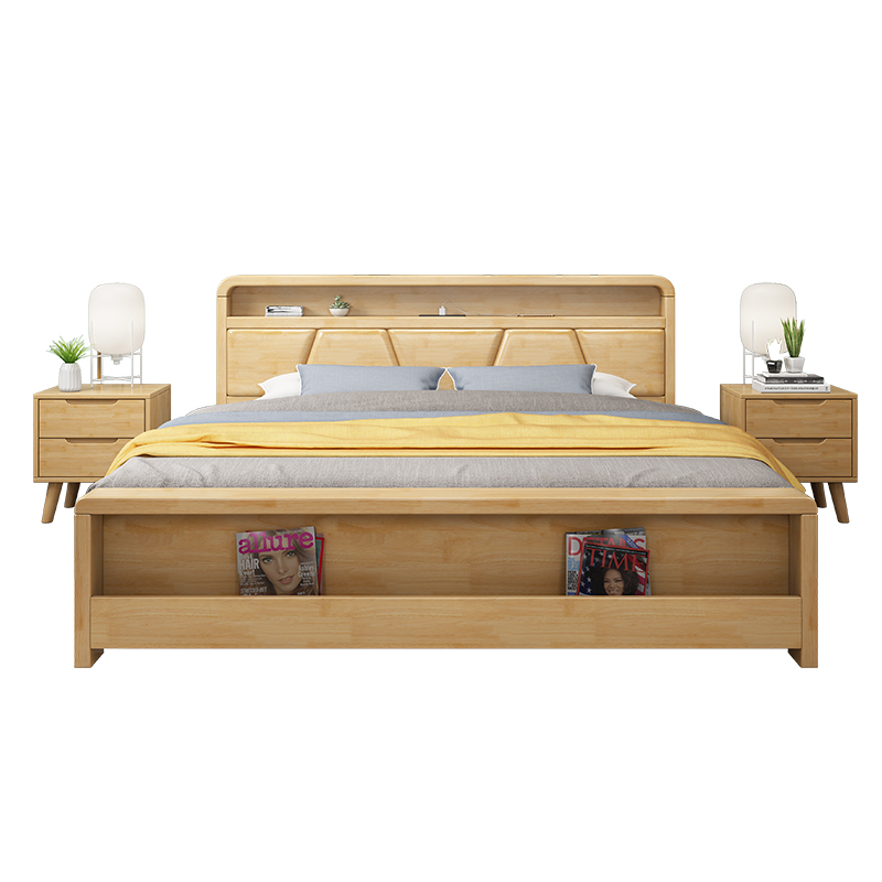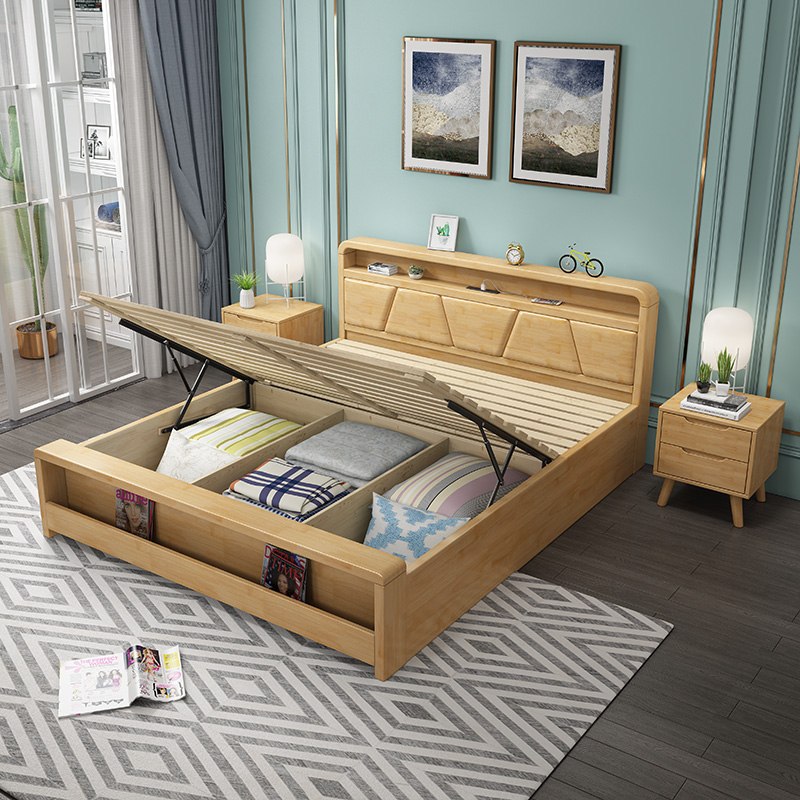 High box storage solid wood bed 1 8 m double bed modern minimalist small apartment bedroom 1 5m single bed Nordic bedroom