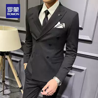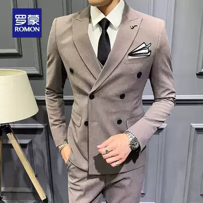 Romon double-breasted gentleman suit suit suit male handsome host dress youth business casual suit three-piece set